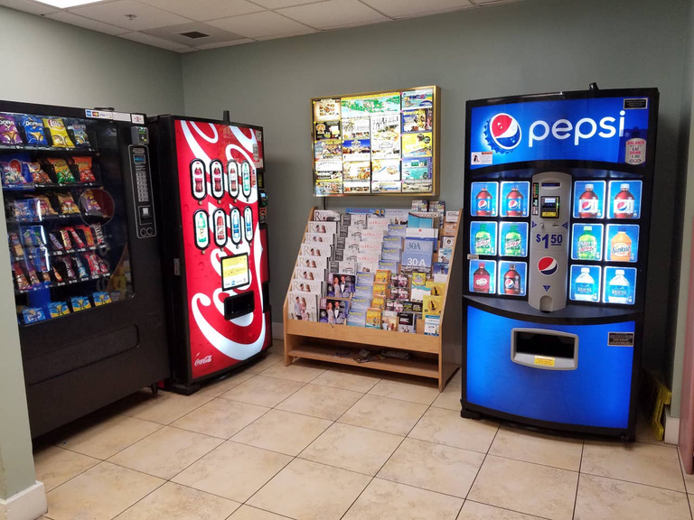 Vending Machines on 1st floor and 4th floor pool lobby.